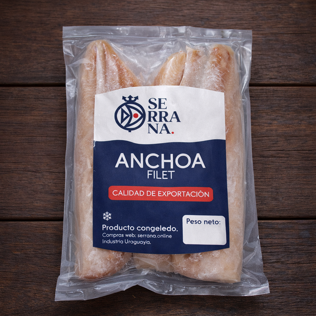 Filetes de anchoa congelados para preservar su frescura. Ideales para preparaciones rápidas, marinados o cocciones breves. Listos para usar.
